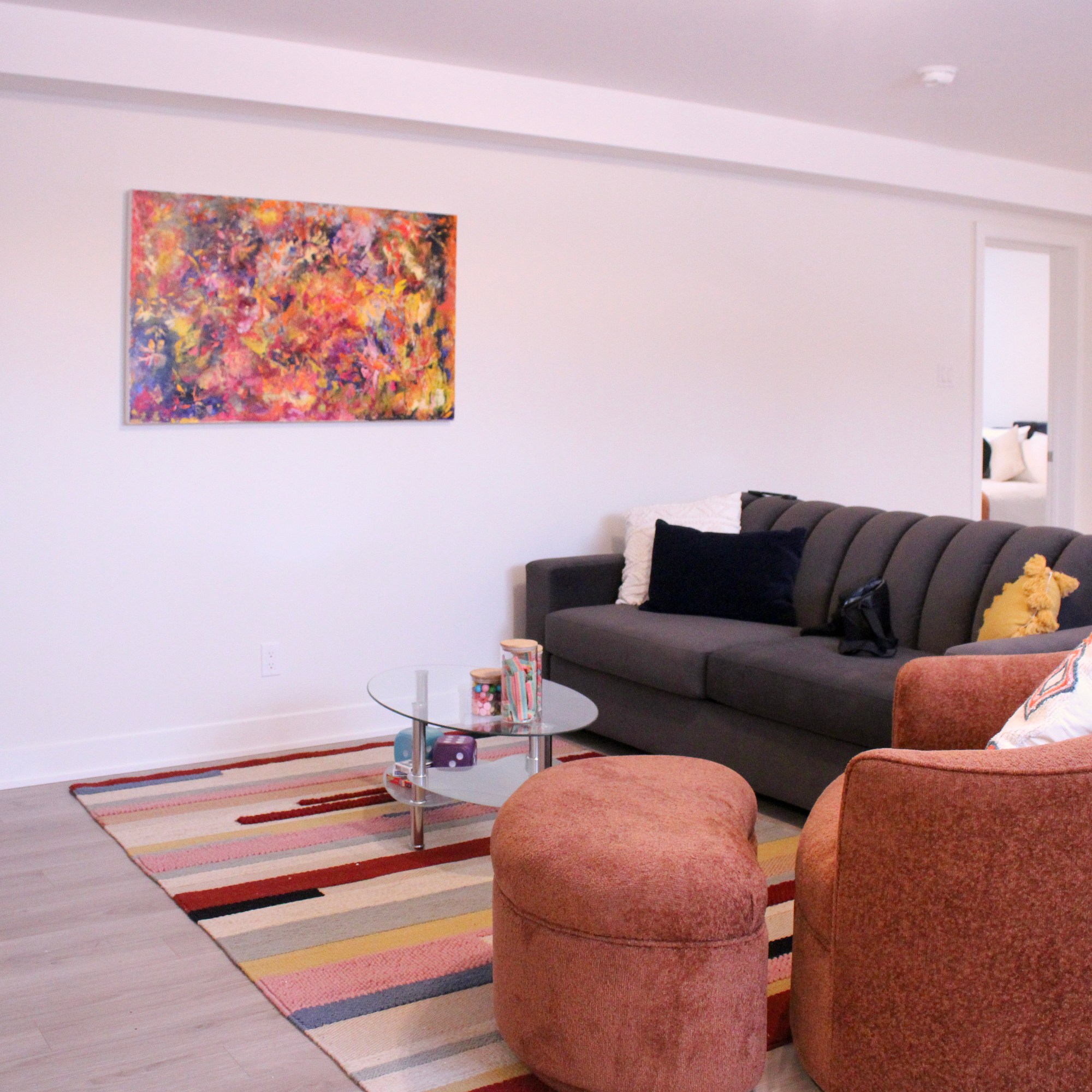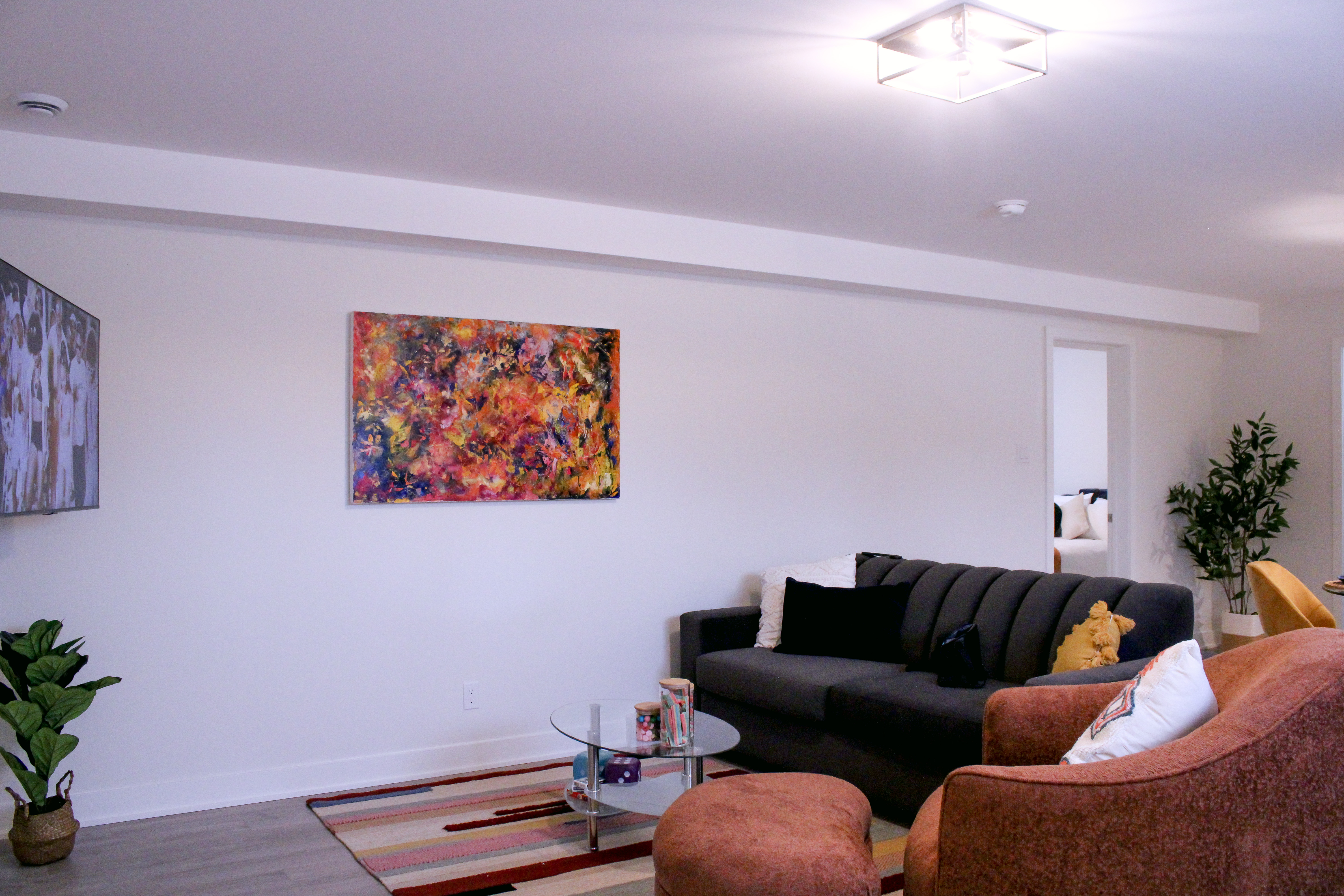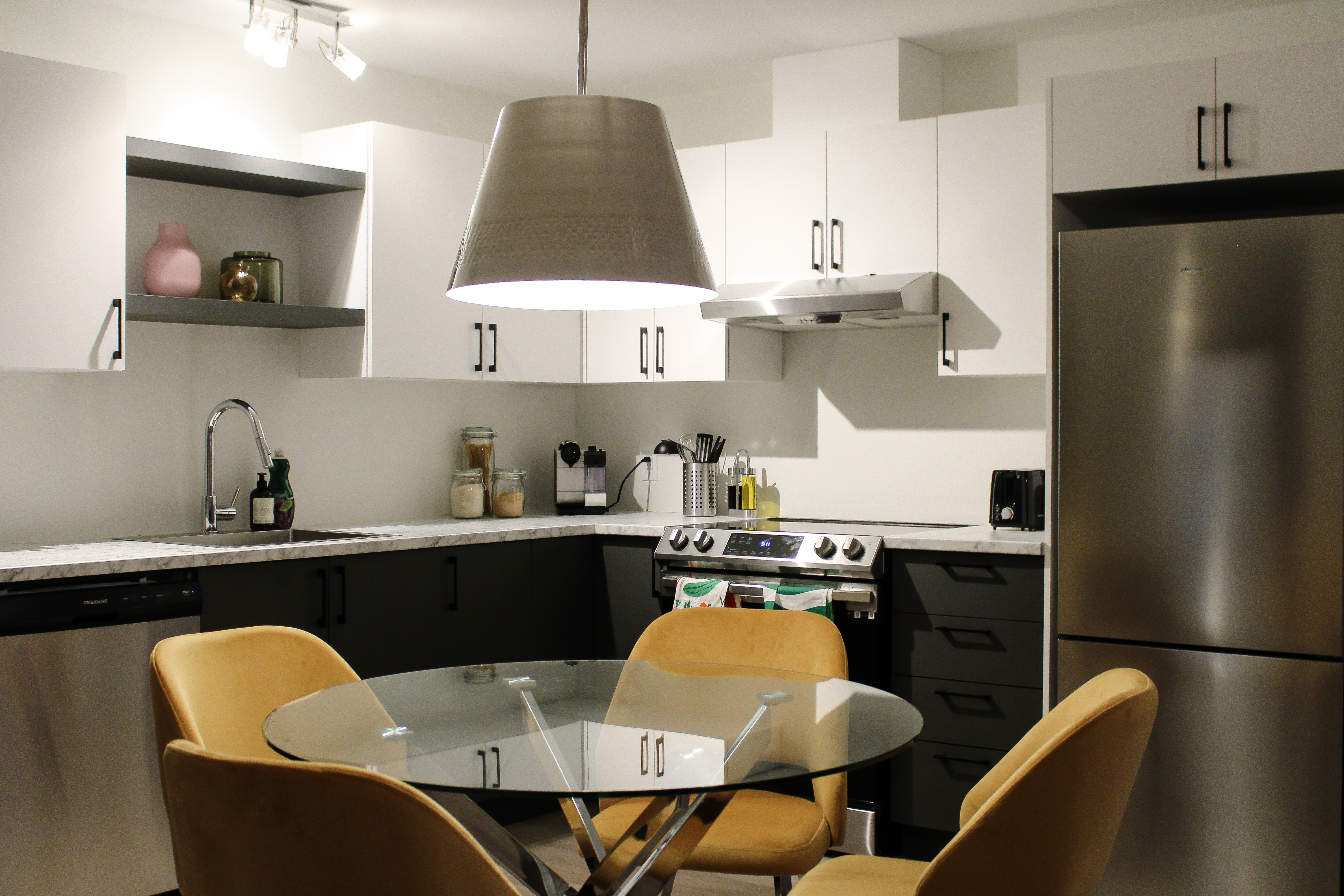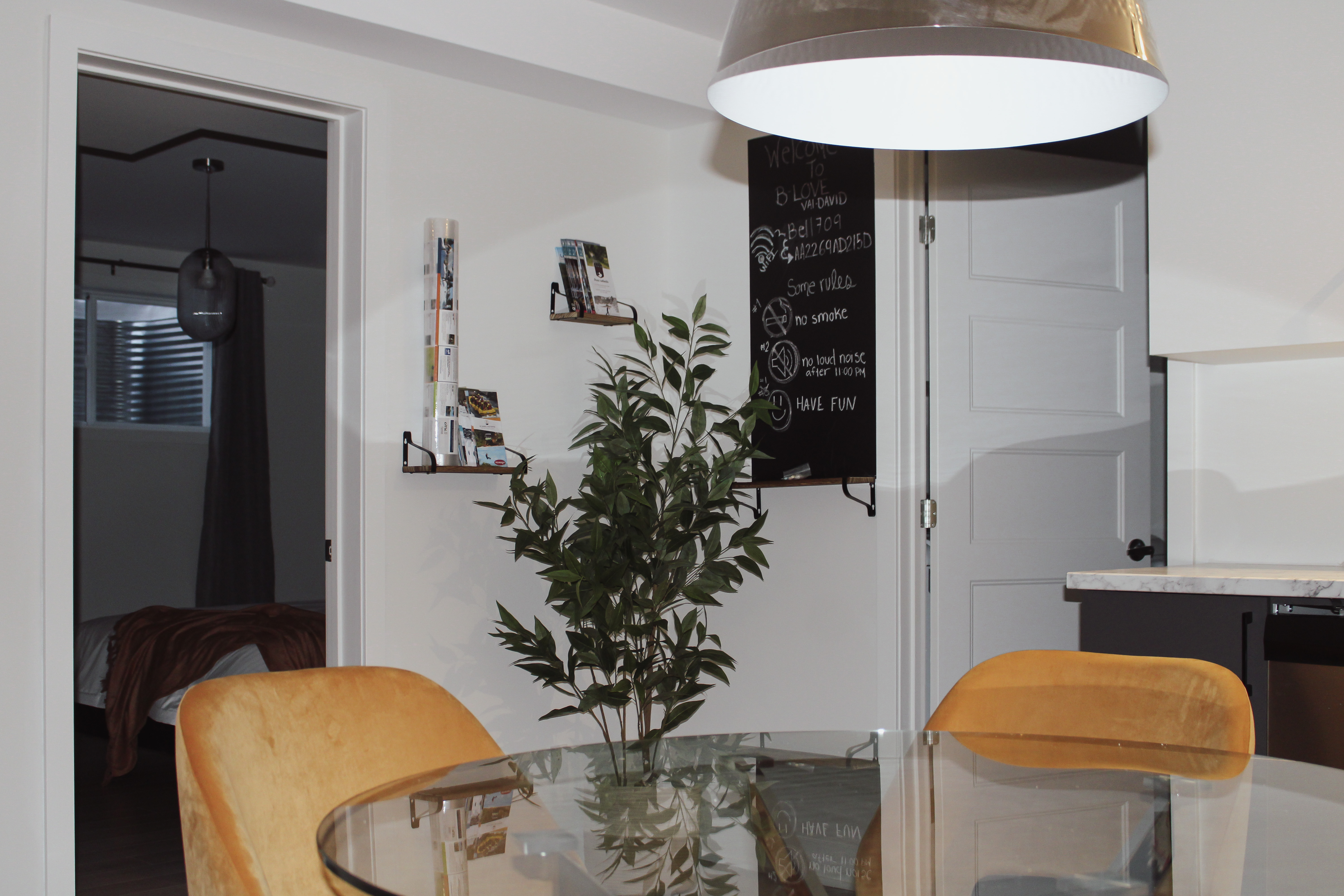 - Ambiance chaleureuse: Notre appartement dispose d’une chambre confortable avec un lit queen, d’un salon accueillant comprenant également un divan-lit queen avec matelas à mousse mémoire de qualité pour un sommeil réparateur, et d’une cuisine à aire ouverte entièrement équipée. Vous trouverez également une laveuse et une sécheuse pour votre confort.